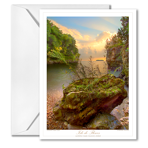 Hand printed on archival premium matte paper. Full paper size 7 3/8" x 11 1/8" scored and folded to 5 1/2" x 7 3/8" with accompanying envelope.